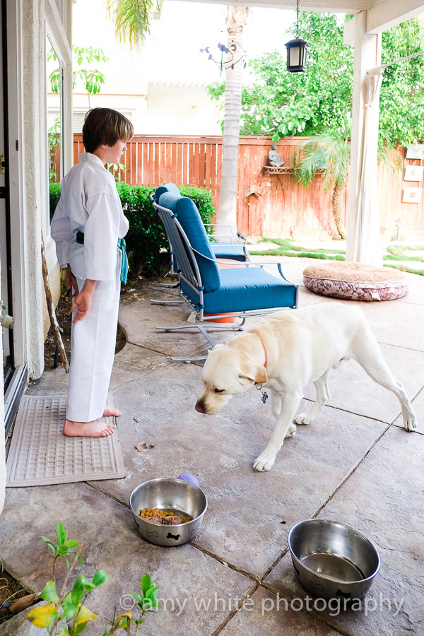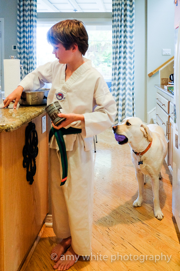 It\’s one of Quinn\’s jobs and he no longer complains about it or is grossed out by the texture of the food. He just takes care of his buddy.