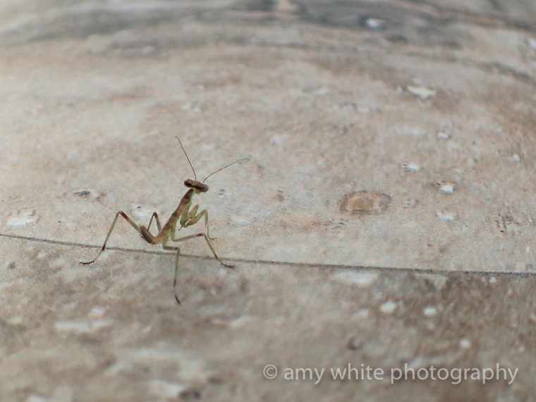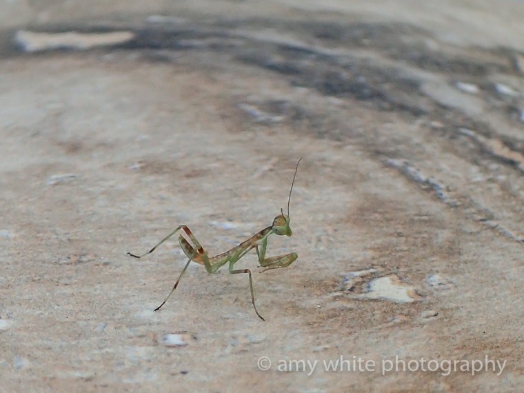 And Don spotted this teeny tiny praying mantis on our outside table. It was about the size of a mosquito.