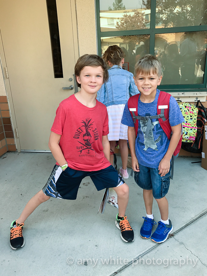 I have heard all good things about his teacher, Mrs. Carroll, and he has a couple of friends in his class. Mrs. Carroll told the kids that she used to be the scary and strict teacher but now she is the funny teacher. They thought that was pretty funny! Quinn really liked her.
