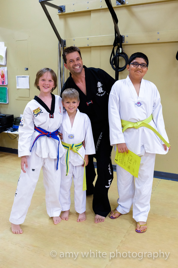 Master Stolsig with Quinn, Hayden, and Vivaan with their shiny new belts.