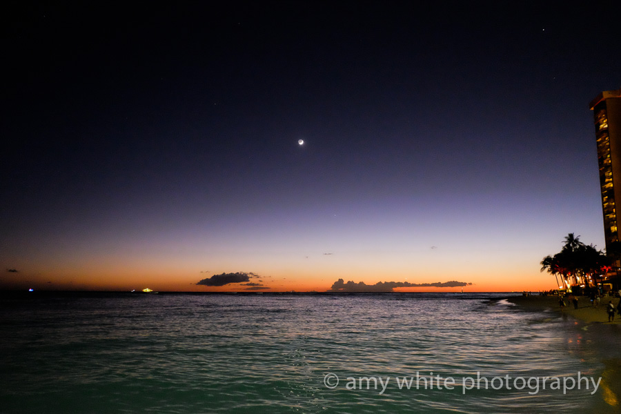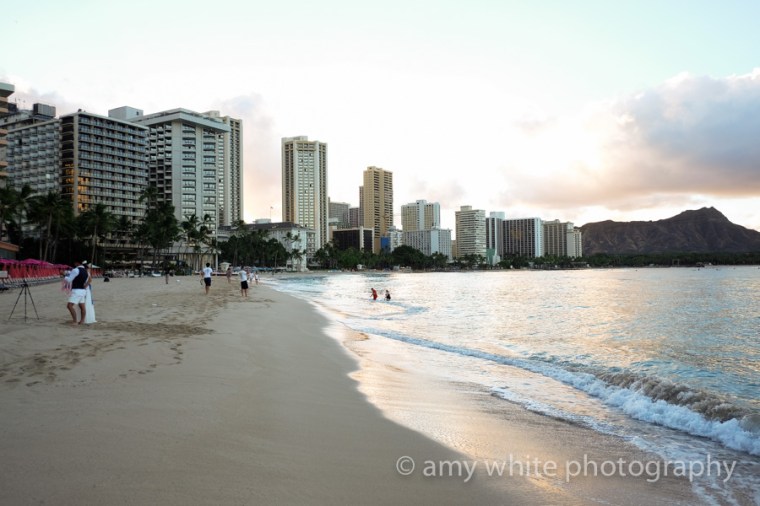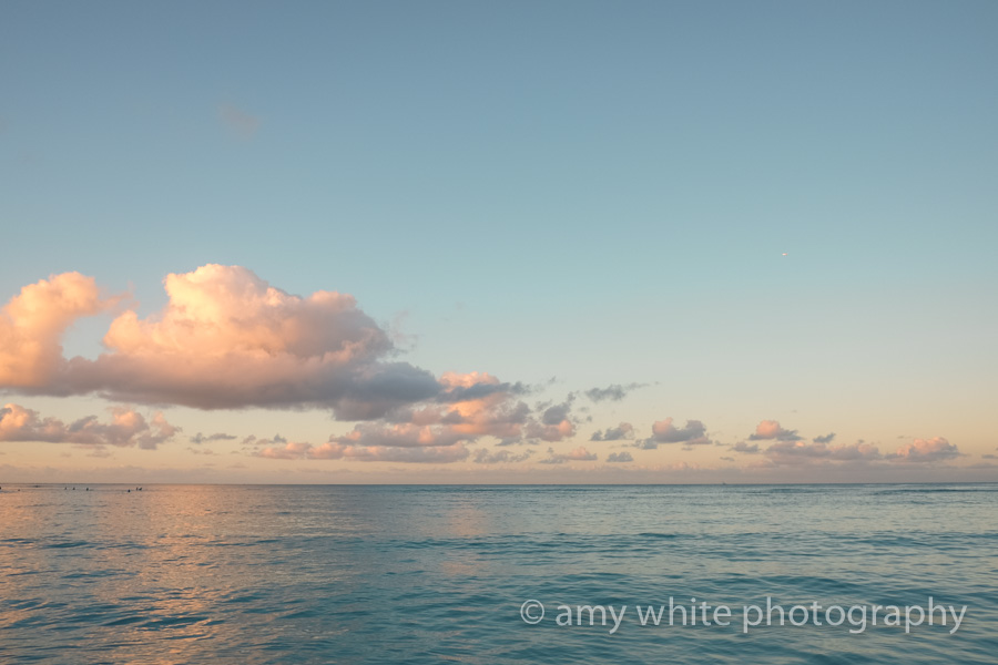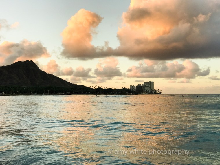 I woke up on California time so I went out to check out the sunrise. A view towards Diamond Head. The surfers were up early too.