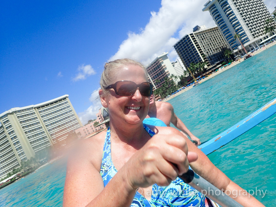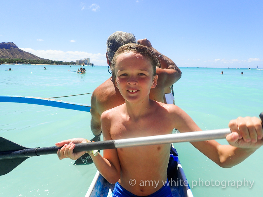 There were lots of activities right on the beach so we went out on an outrigger. Quinn was facing me and was a non-paddler.