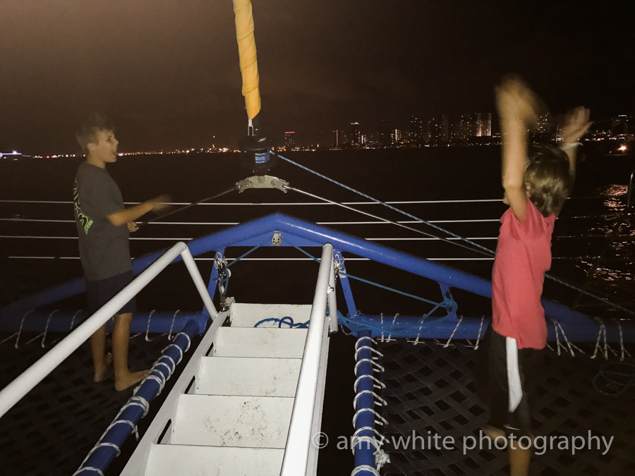 Ross had been to Waikiki before and suggested we go out on the Manu Kai catamaran which always pulled up right in front of the hotel. They had a Friday night fireworks cruise which was alot of fun.