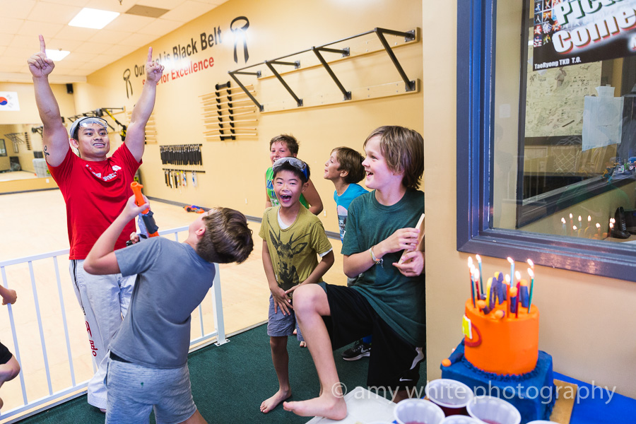 Of course Quinn had to break a board. His friends couldn\’t believe that he broke it, and on his first attempt. One tough birthday ninja.