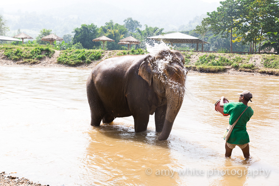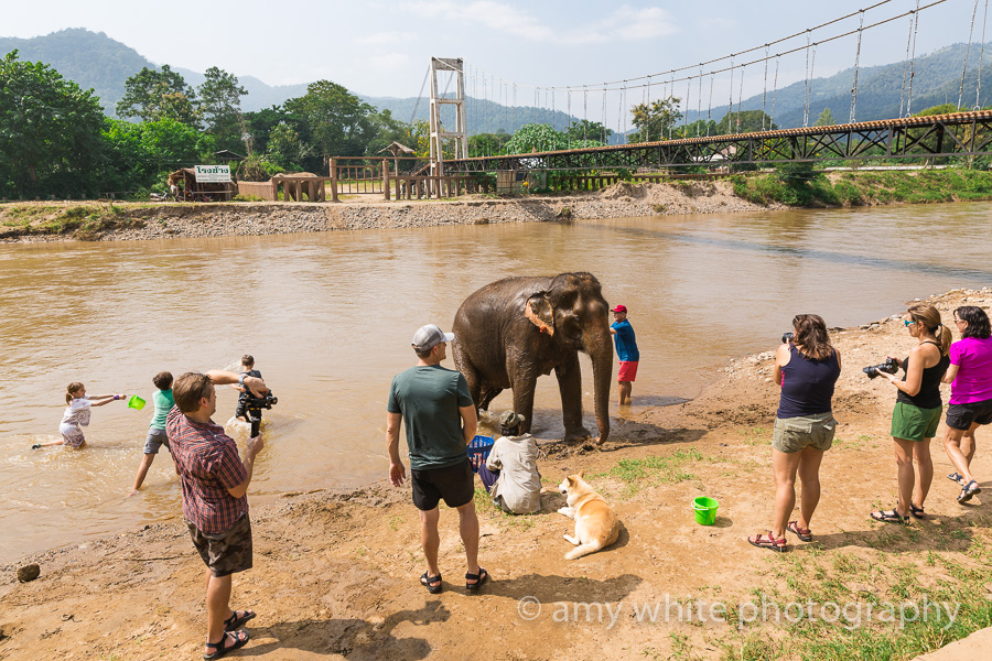 Our turn to bathe an elephant. The little girl in the white asked her mom if she could get her shorts wet…moments later she was full on swimming.