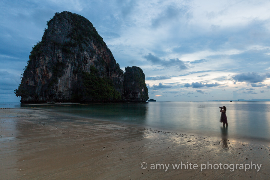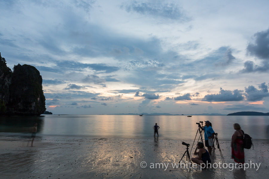As the sun went down we positioned ourselves for the sunset and some long exposure photography. Here\’s our crew shooting Brian in the water.
