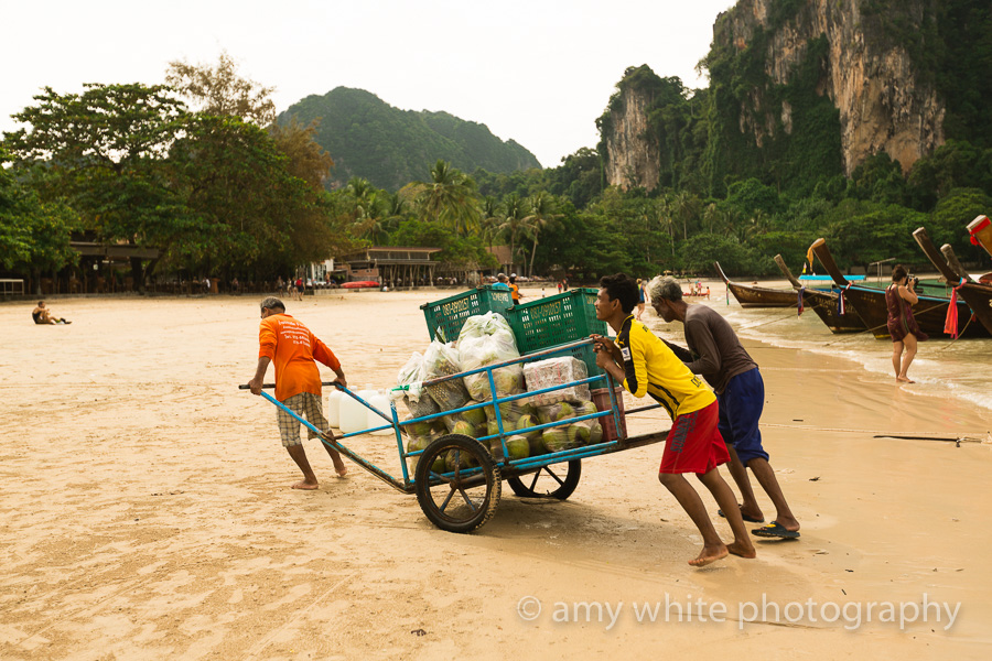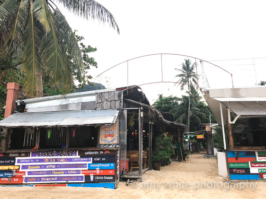 Around 3 pm we hiked over to another beach for time lapse photography. I need to get some software to put the time lapse together but will share these in the meantime. This beach has food boats. Coconut Shakes!