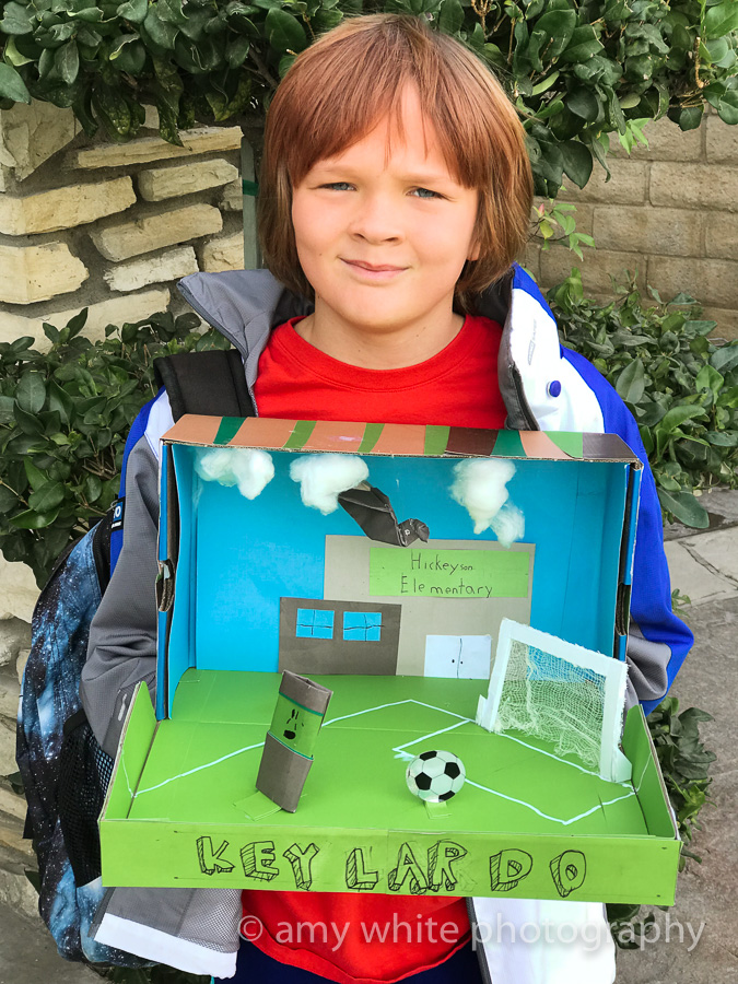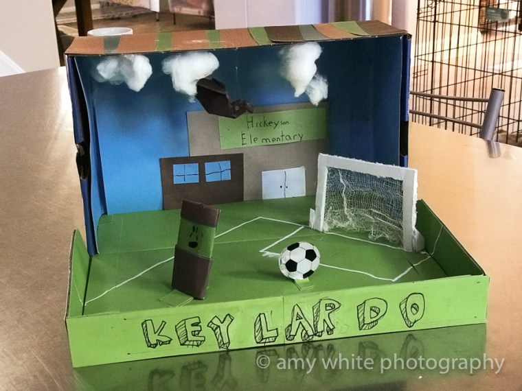 He had his first book report. They had to pick either a spooky or mystery book and had the option of doing several different presentations. Quinn went with the book Key Lardo and chose to make a diorama.