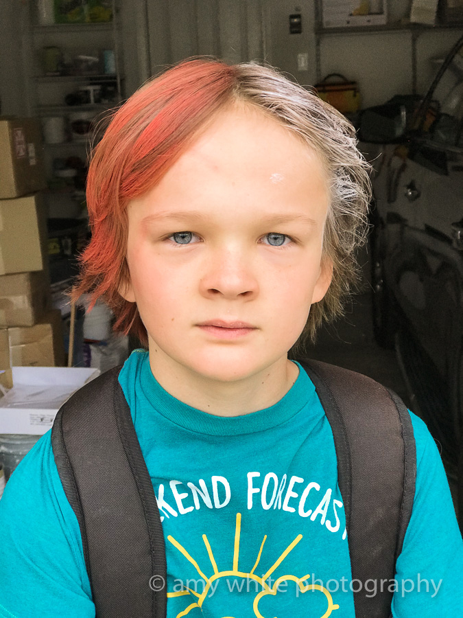(He decided to color his hair red again after showering the crazy hair day out.)