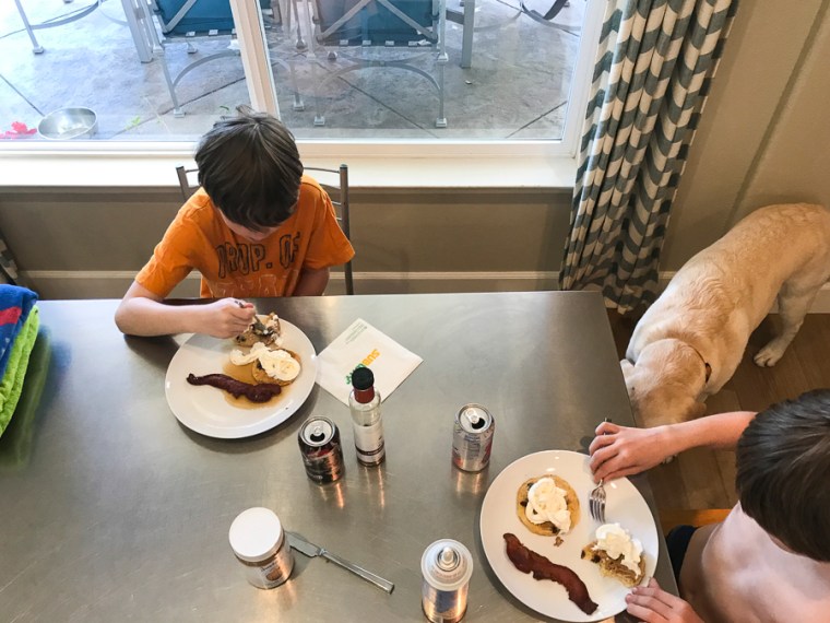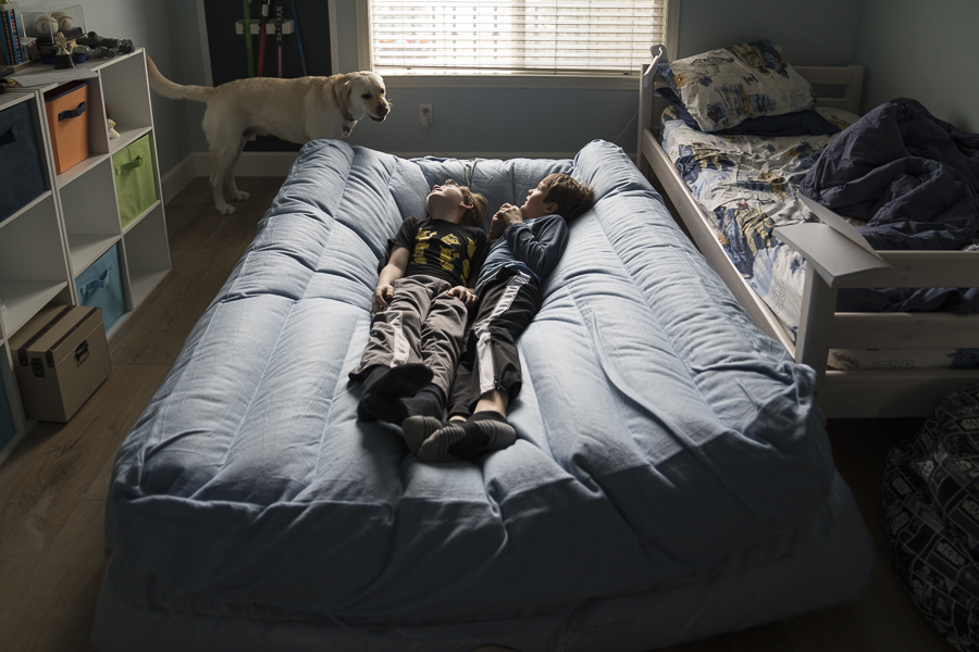 One thing that is so awesome about this age is that they want to do everything themselves. They wanted to get the air mattress out of the garage, carry it upstairs (it\’s really heavy), and get it set up. Again, how could I resist that request.