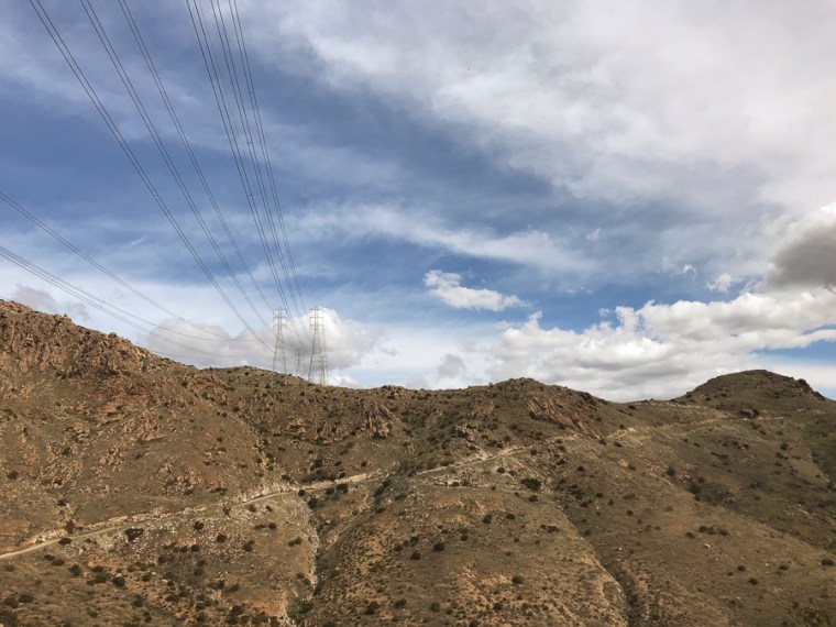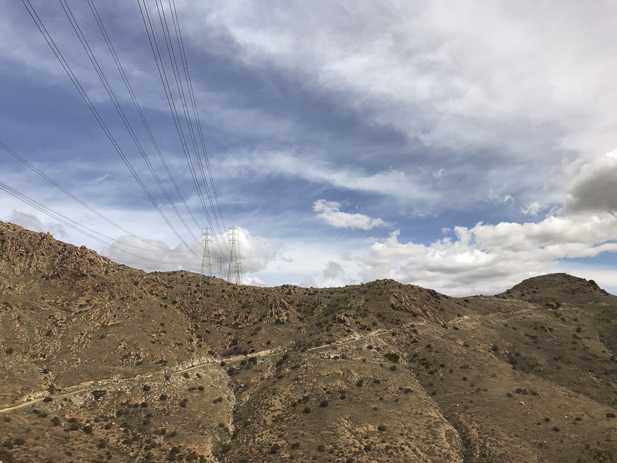 This hike was about 2 miles uphill. Our turn around point was at the powerlines in the distance. You can see the trail going up the side of the mountain.