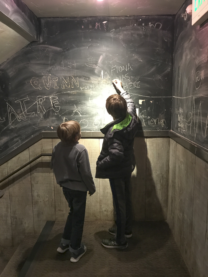 Then it was on to Monterey. We arrived around 5 pm and met the Conrath\’s in Cannery Row for dinner. The restaurant had an awesome chalk wall where Quinn left his signature.