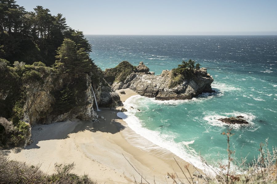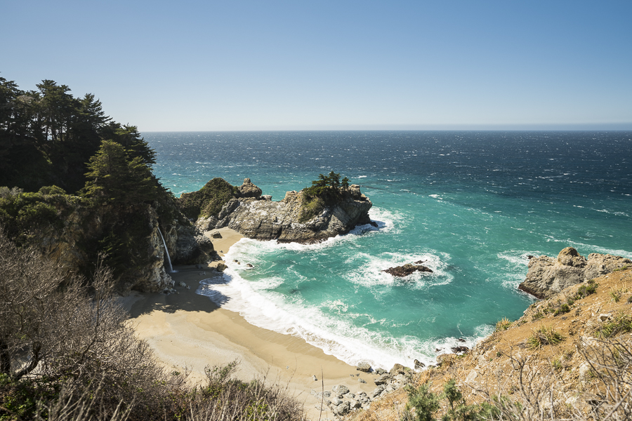 Stunning! A waterfall down to the beach. Paradise found. Unfortunately there was no way to get down to the beach.
