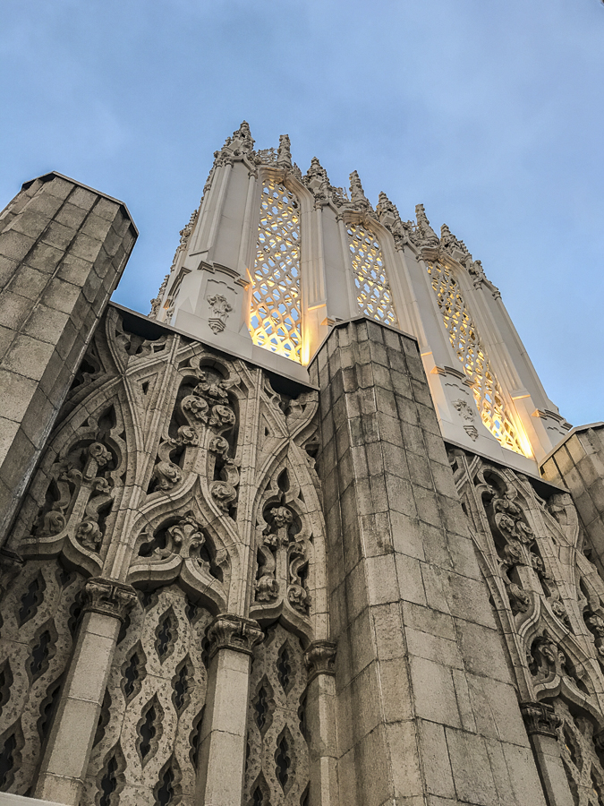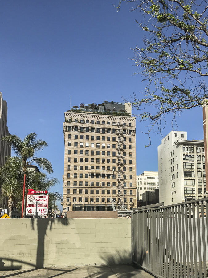 A look up. The bar and comedy show were in the Ace Hotel which was previously the United Artist building built in 1927.