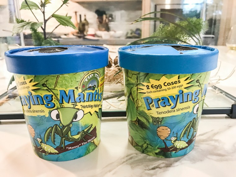 Once they hatch we need to let them go or they will start eating each other. I\’ve threatened Quinn to within an inch of his life about taking the top of the terrarium inside the house once they hatch. I have this nightmare vision of 500 baby praying mantises let loose in our house.
