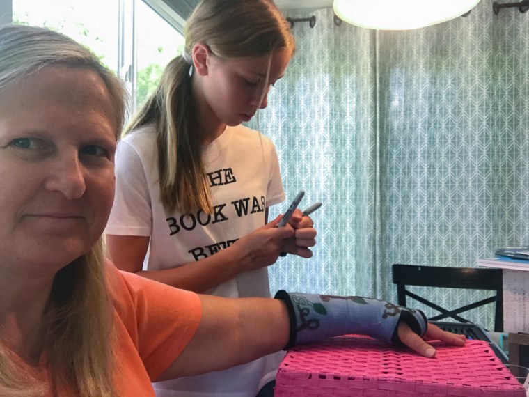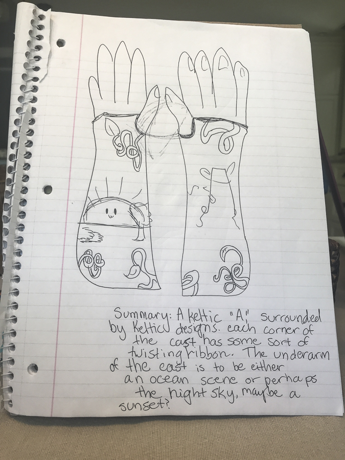 Quinn\’s buddy Hayden has an older sister who is very artistically talented. She offered to decorate my cast and I wholeheartedly agreed.