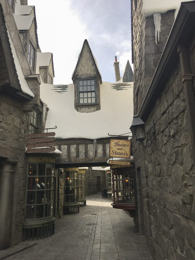 The empty backstreets of Hogsmeade. It\’s great to get there early to enjoy before the masses arrive.