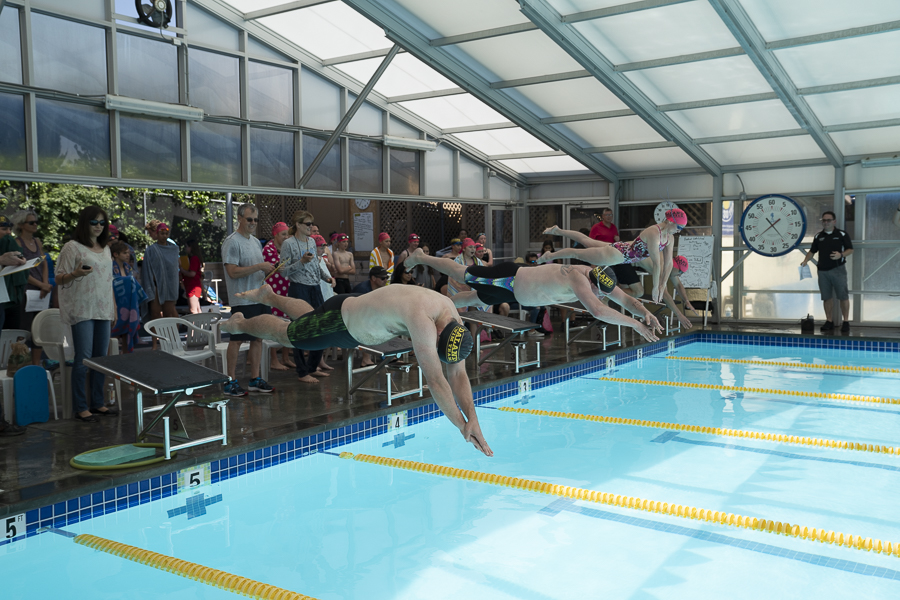 And they\’re off! Don is in lane 4. The high flying woman in the pink cap next to Don is Coach Adrienne who usually coaches Quinn\’s team. There were a handful of adult swimmers and most of them swam in college and were pretty good.