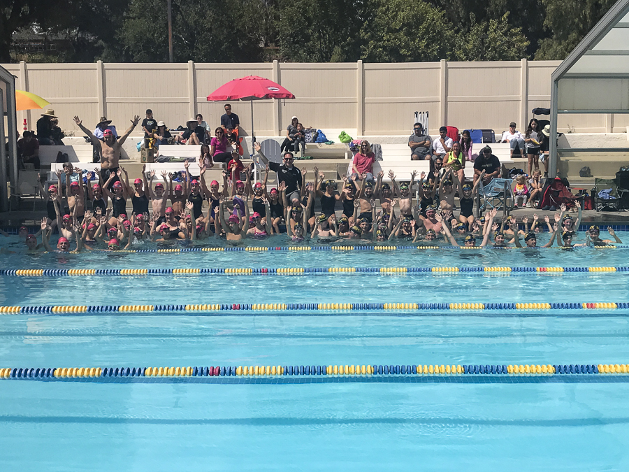 The Black Team getting pumped up! That\’s the main swim coach next to Don.