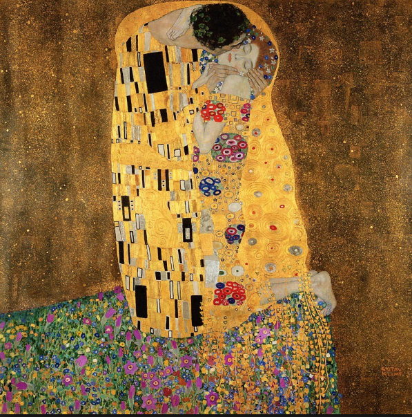 Her inspiration was Gustav Klimt who painted The Kiss.