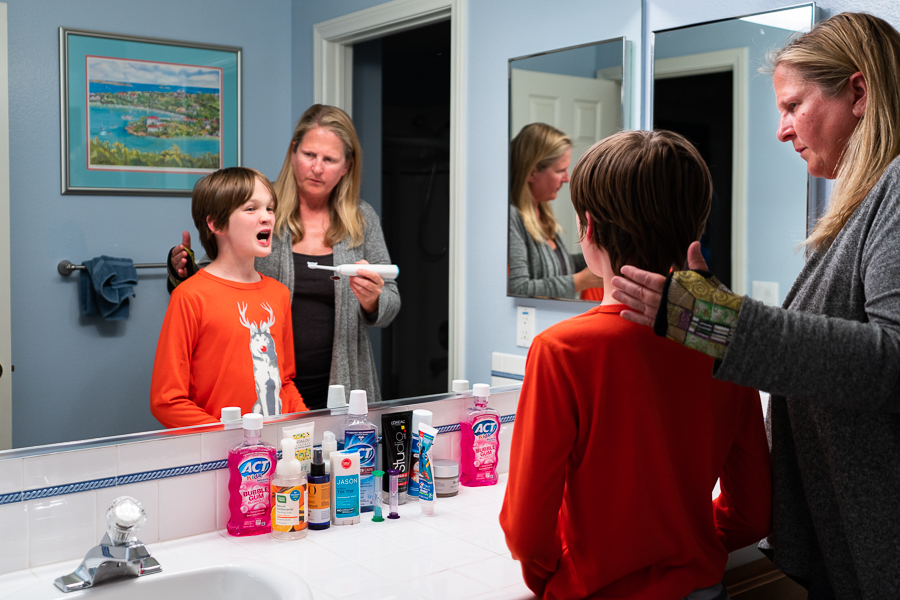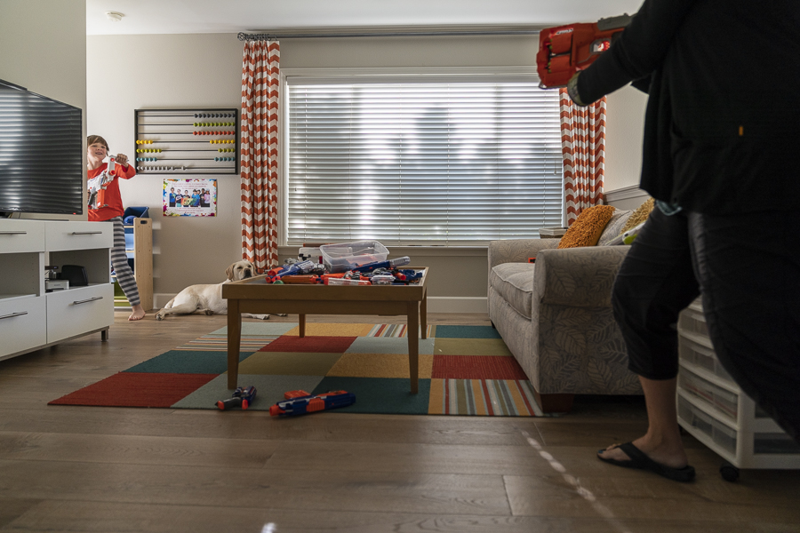 I wanted to capture the routine of tying Quinn\’s belt for TKD and we got a surprise ambush.