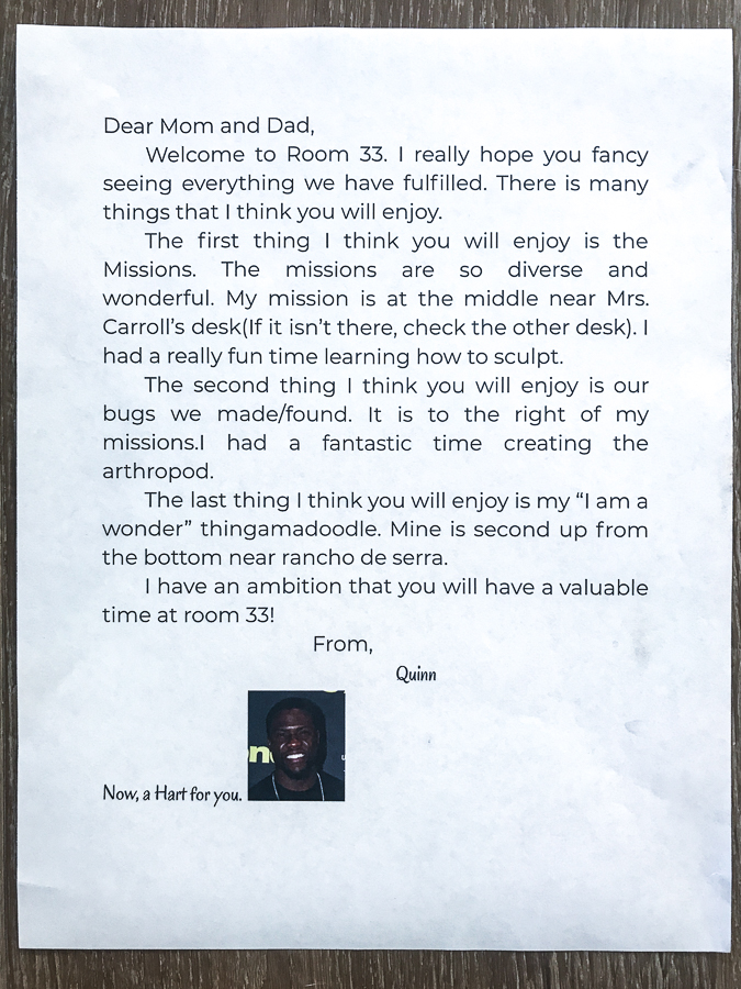 He was so excited about the little pun he put at the bottom of his letter (it\’s a picture of Kevin Hart).