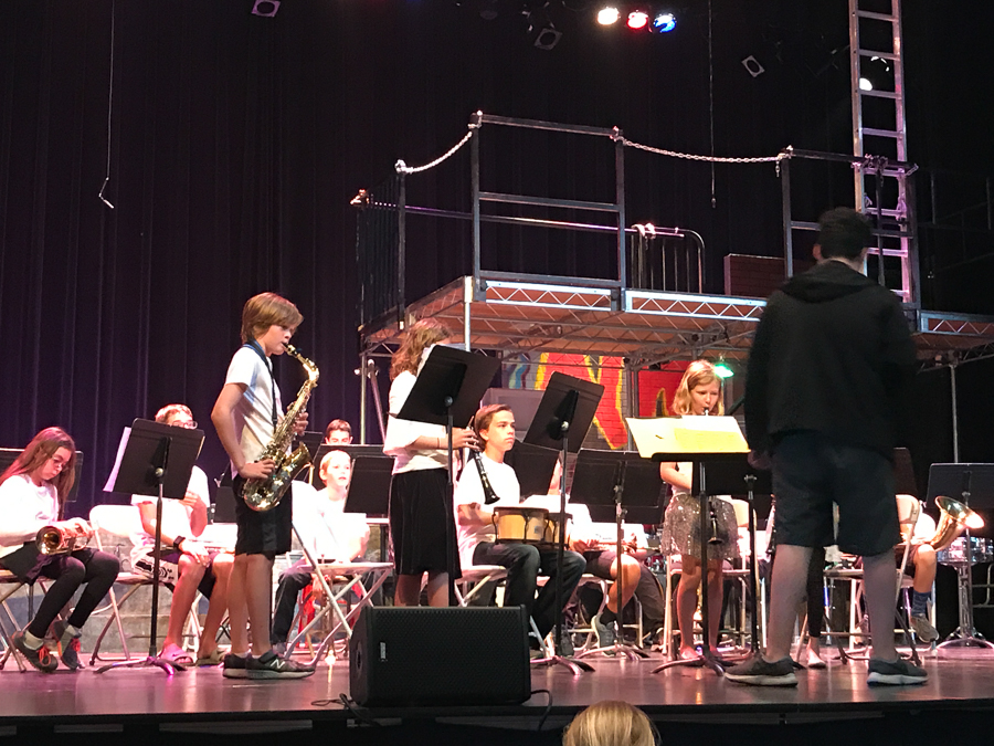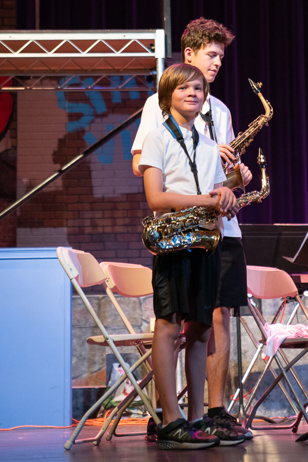 The camp culminated with a short concert on Thursday. Here\’s our cool dude with his mentor Kingsley who helped him out with the sax all week.