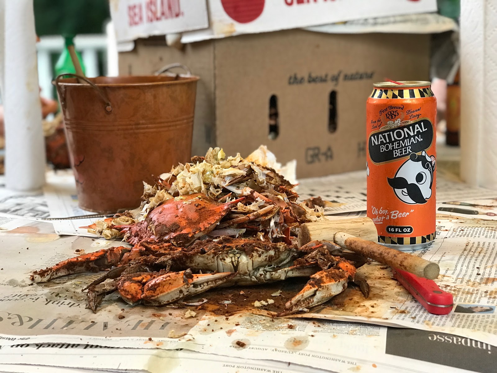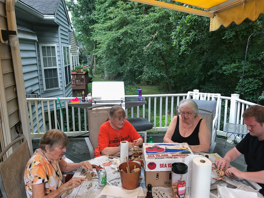 No trip to Maryland would be complete without a crab feast. And we only had to walk a couple doors up to Sandy\’s house. Alex was there to help his grandmother.