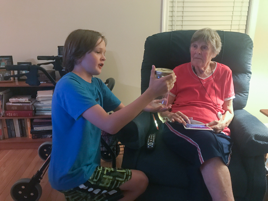 Quinn was super excited to be able to see and catch fireflies as we don\’t have them in Cali. We didn\’t find as many as normal but Quinn did catch one to bring in and show Grams.