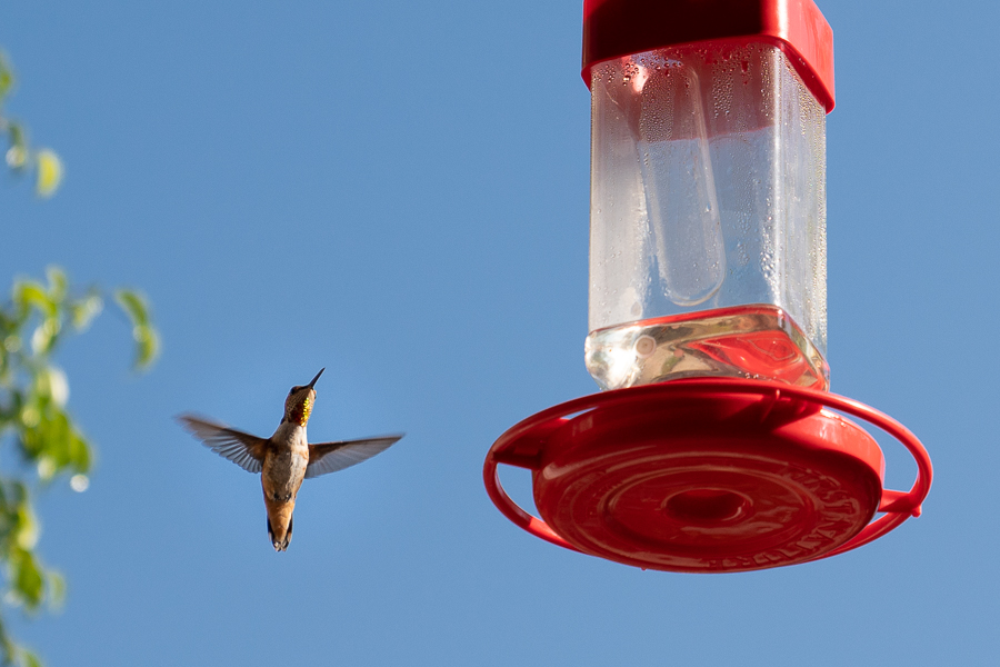 There is a wild bird store near Quinn\’s TKD studio so I stopped in and bought a recommended hummingbird feeder along with lots of tips on how to attract these little creatures.