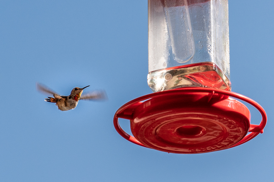 It takes (Don) a little bit of work but it is paying off and we are enjoying watching the hummingbirds at the feeders. I need work on my hummingbird photography but it was fun trying to capture this guy.