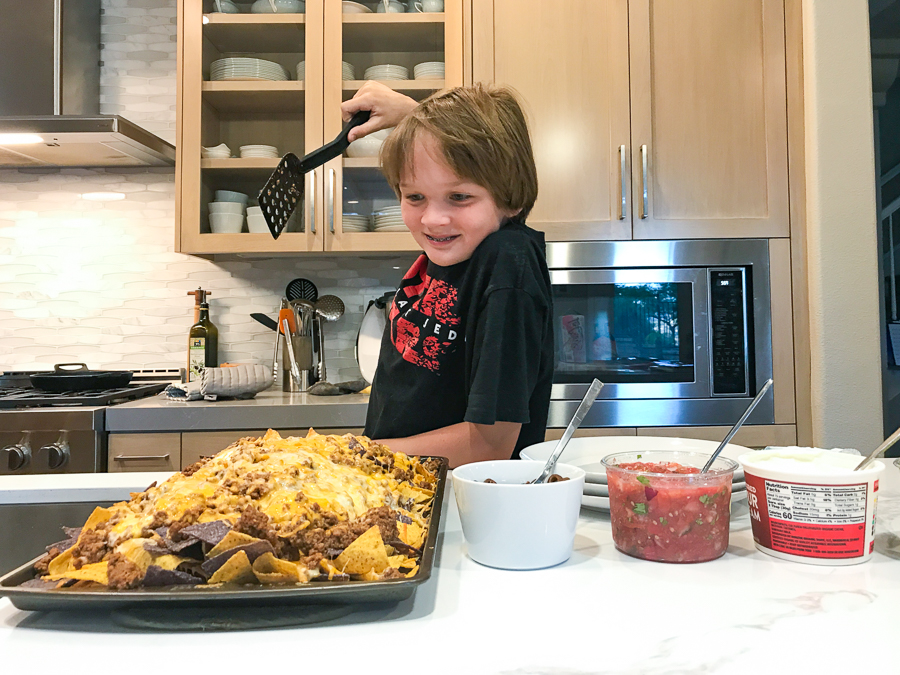 Nacho Dinner Published on September 18, 2018 by amyewhitelivecom The other day Quinn asked if he and his dad could make nachos because they make the best nachos ever. So Sunday night dinner was decided. Don is a true believer in more is better so look at this pile of yummy nachos. Share this: Click to share on X (Opens in new window) X Click to share on Facebook (Opens in new window) Facebook Like Loading... Related
