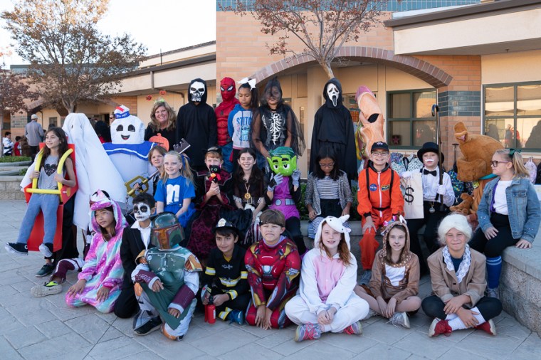 We went to a couple of parties before trick or treating. There was a block party in our neighborhood so we ended up there and trick-or-treated in our neighborhood. It\’s always a huge party and lots of fun!