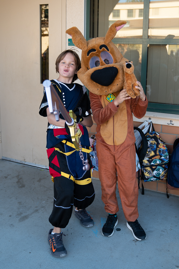 With his buddy Scooby Doo, I mean Ryan, at school.