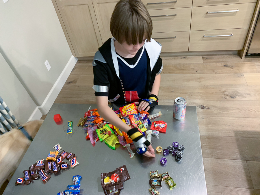 Then you have to come home and sort your loot. Quinn decided to keep 20 candies and exchange the rest of them for a new video game. Fair trade!