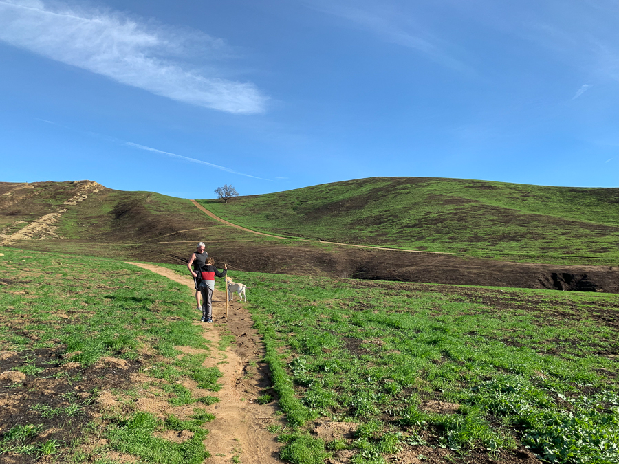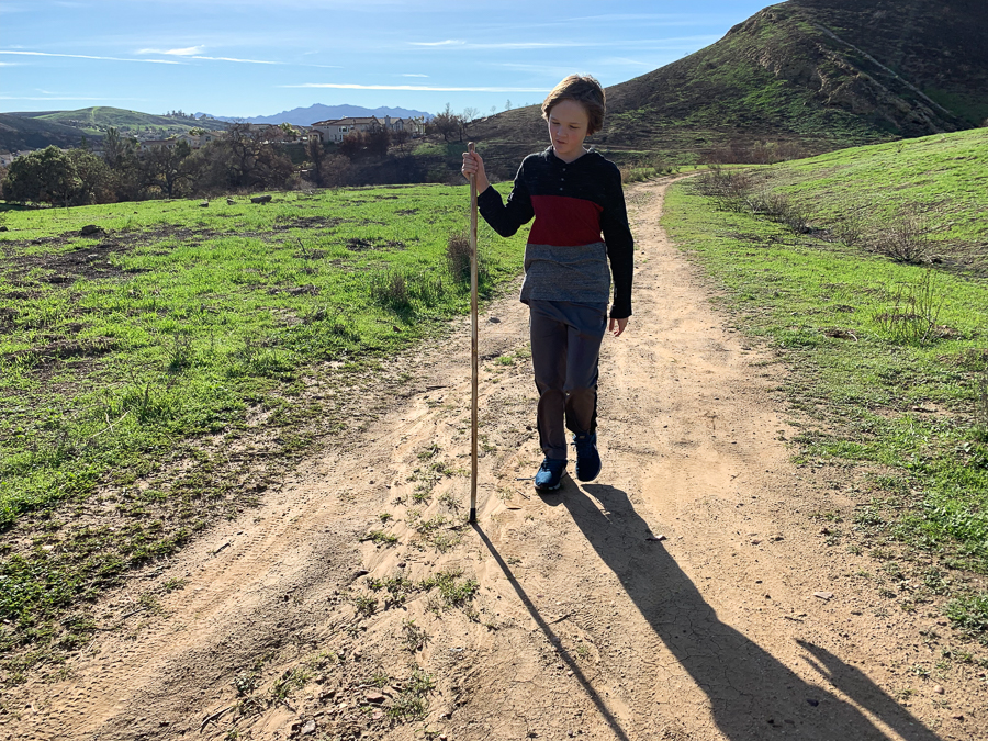 Saturday walks in our green hills. Don picked up this walking stick for Quinn in a gas station on our way back from Mammoth. Quinn calls it his Daisy Stick because there is a daisy engraved in the stick.