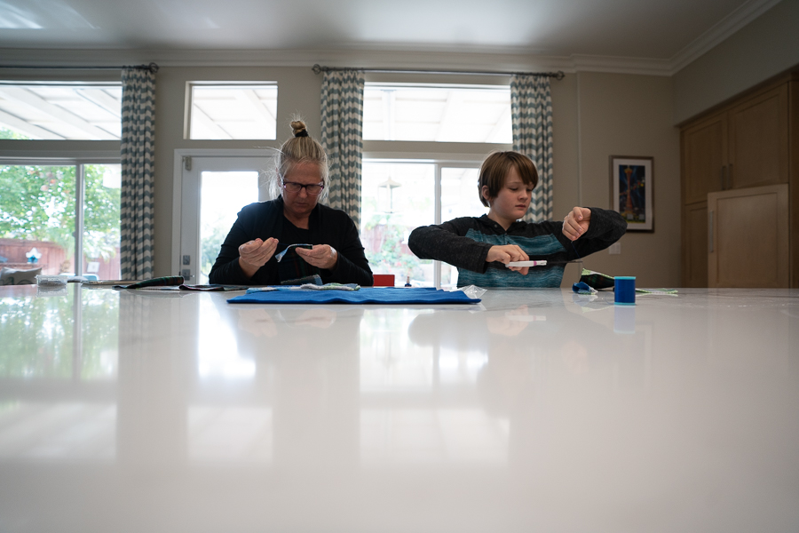 Quinn\’s class studied the colonial days and as part of that he had to create a Sit Upon where he sewed together patches of fabric and stuffed it. They use their sit upons for reading in the hallway or when going to school assemblies. A special treat for 5th graders only.