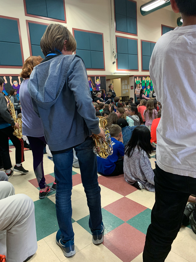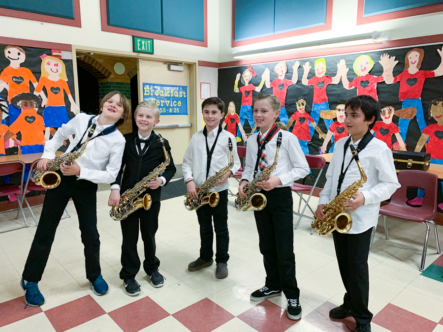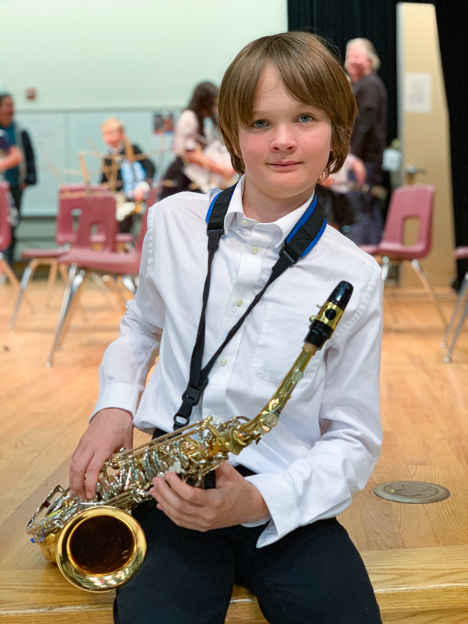 Quinn is still playing the sax in the school band. This year he is in advanced band because he\’s a 5th Grader!