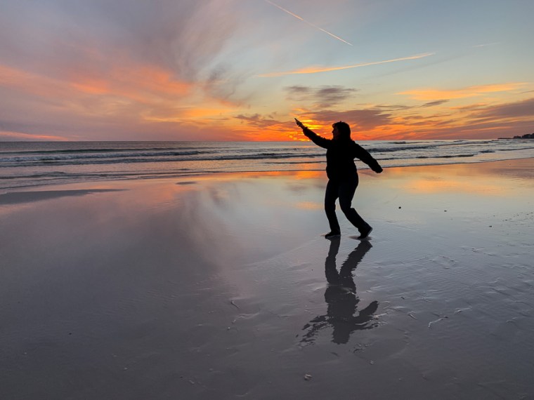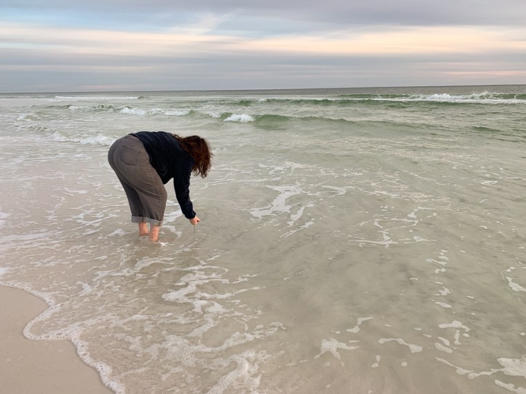 I had to get my feet wet. It was cold but bearable. A man asked Stacey to take the temperature of the water. I think it was around 60 degrees.