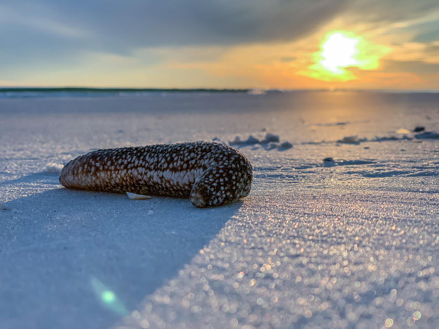 There were quite a few sea cucumbers on the beach so I took this sunset portrait of one.