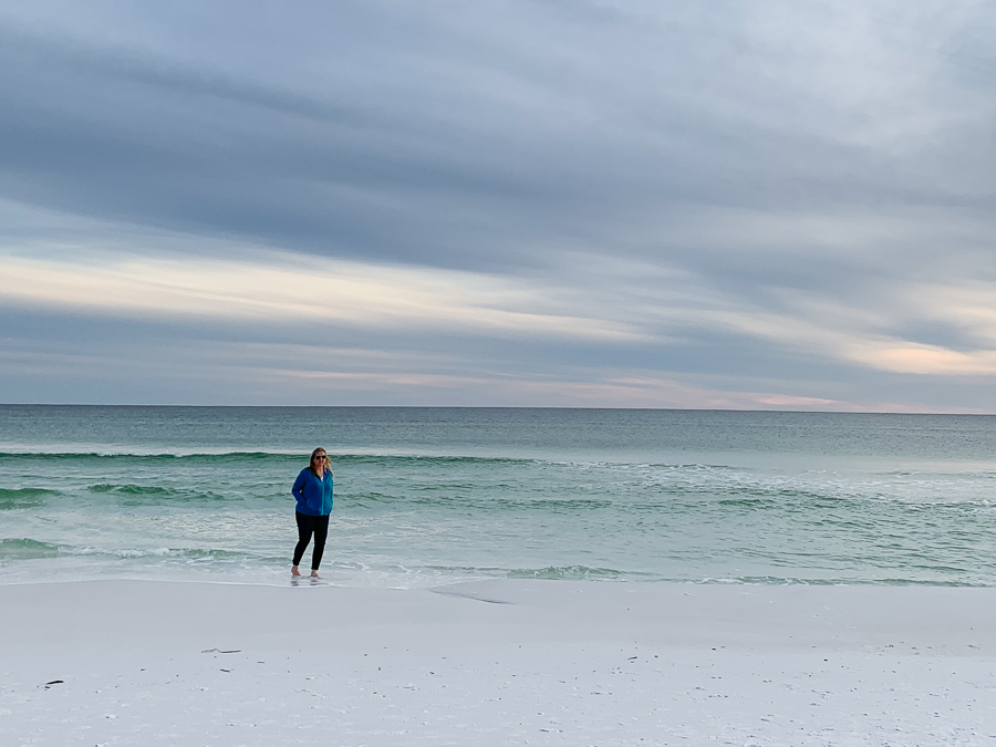 We arrived around 4:30 pm and they weren\’t quite ready for us so we dropped our bags and headed for the beach. One unique thing about Destin is the sugar white sand. Wowza! All my pics on this post are from my phone.