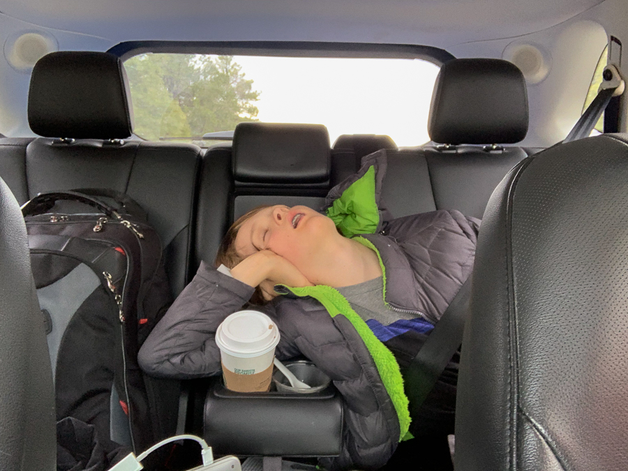 Quinn had jumped out of his bunk this morning around 5 am when he heard his dad going to breakfast because he wanted to have breakfast on the train too. He was zonked out at 3 pm.