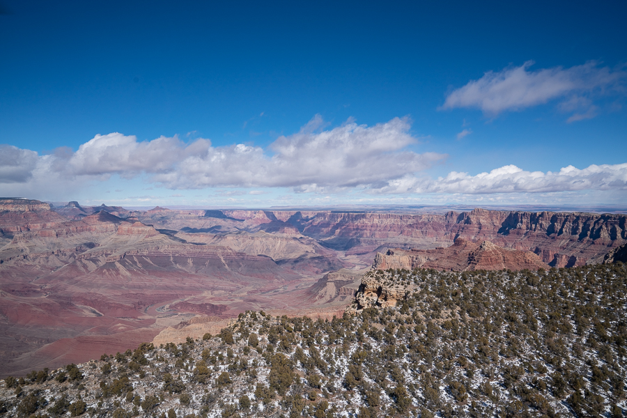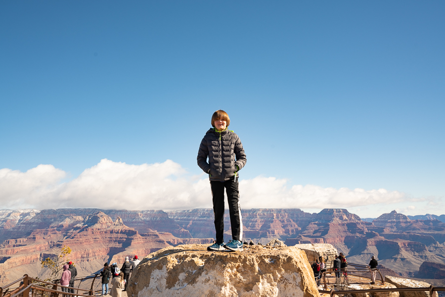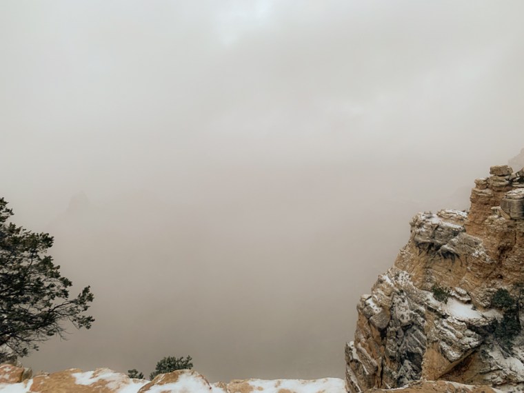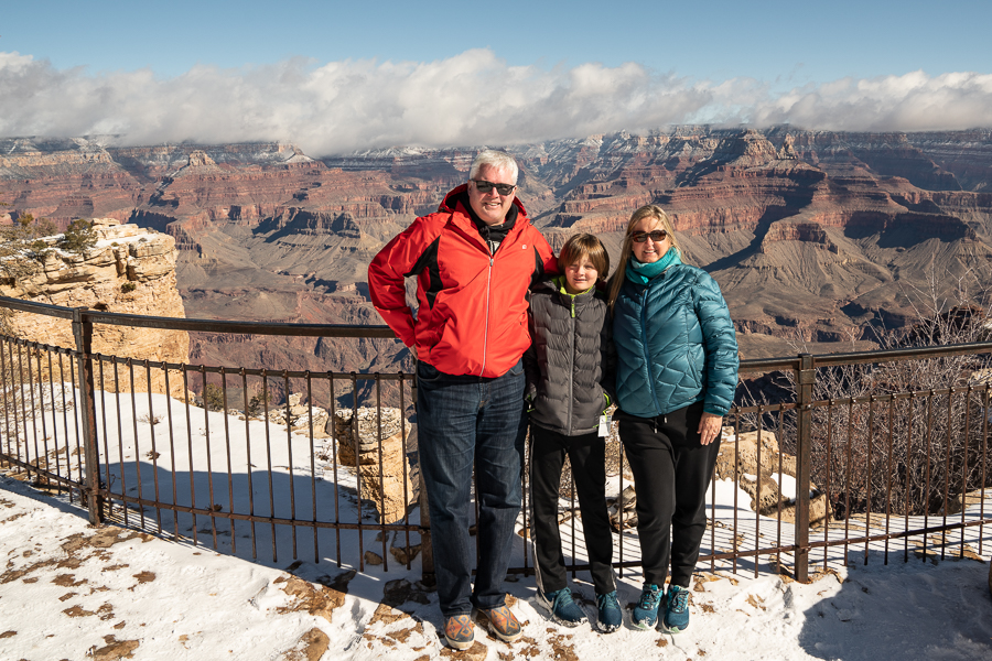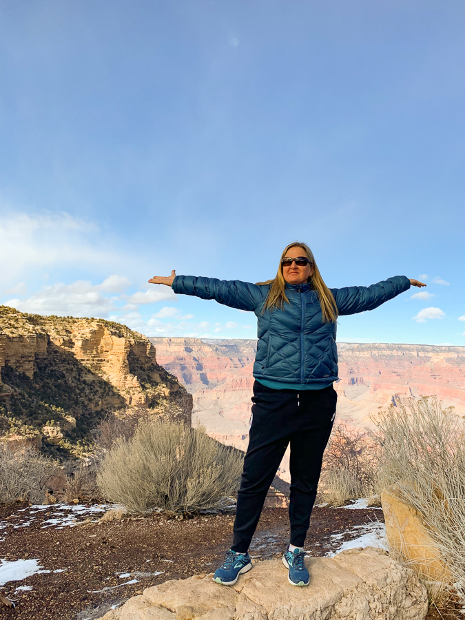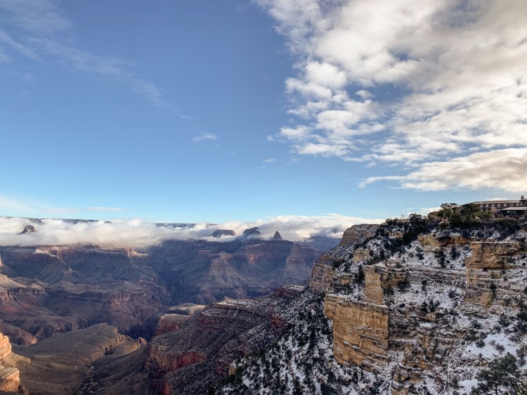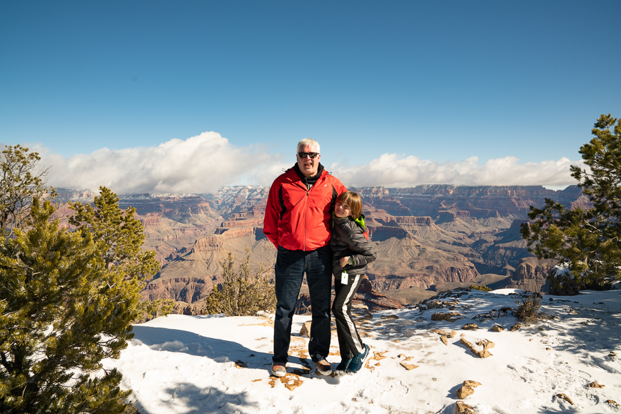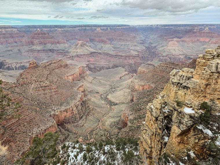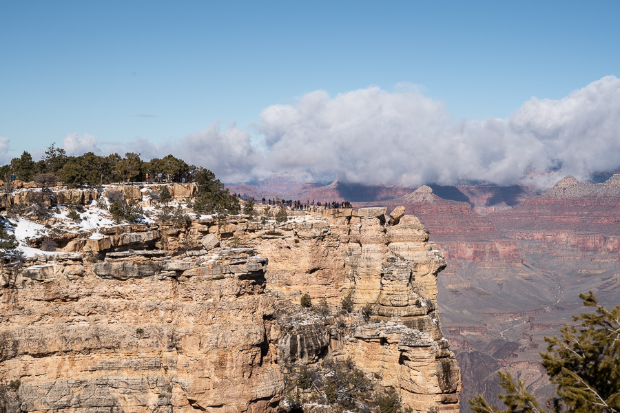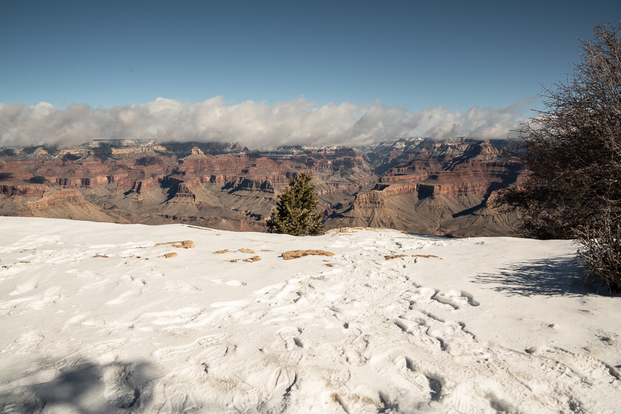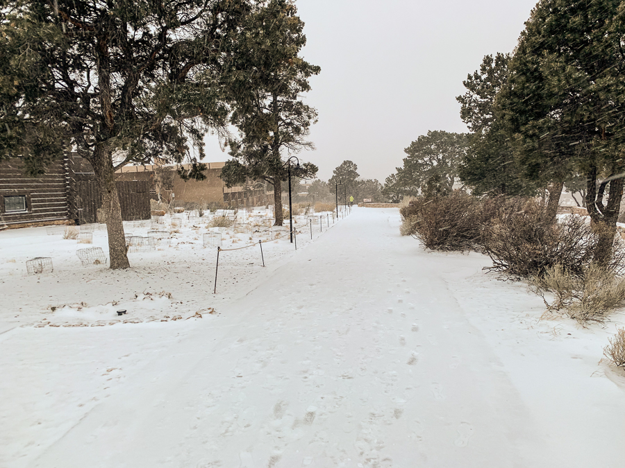 One crazy good and bad thing about the Grand Canyon is that most of it is just a drop off with no railing. And it was snowy and icy. I\’m not sure how many people we saw standing on the edge for the perfect picture. You can see all the footprints leading to the edge.