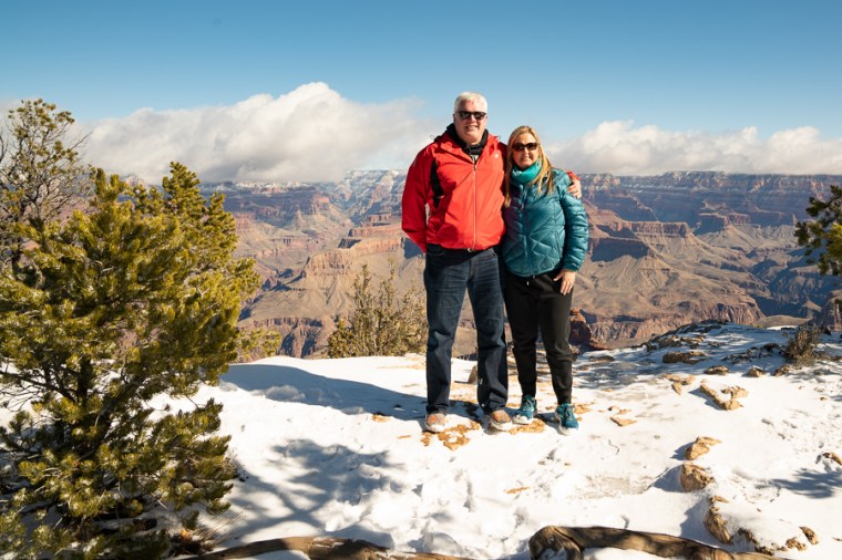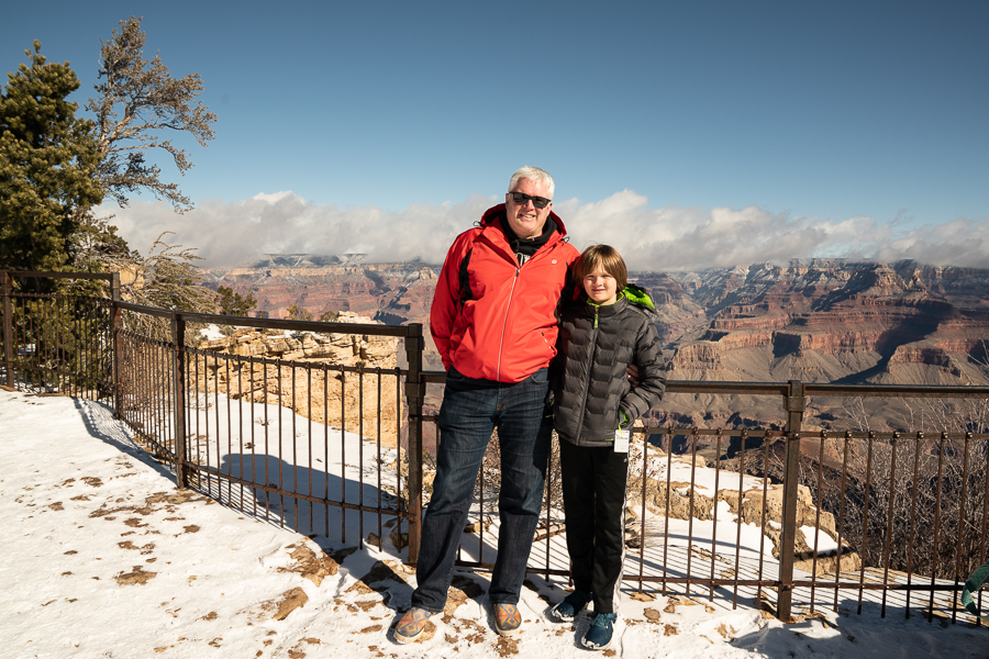 That afternoon we had planned to hike down in to the canyon on the Bright Angel Trail. But it was very snowy and icy and Quinn and I weren\’t feeling so comfortable with it. So we sent Don down the trail and we headed back towards the hotel. Just having a great time!