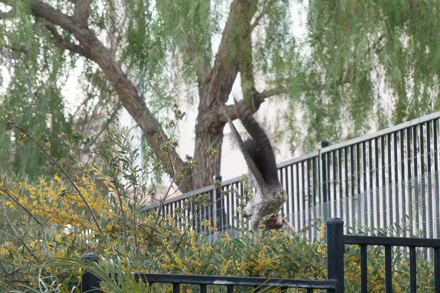 These pics aren\’t the best because I had to really crop them. You can see the hawk has something bloody in it\’s left claw.