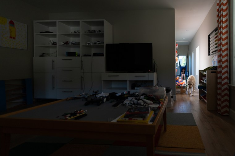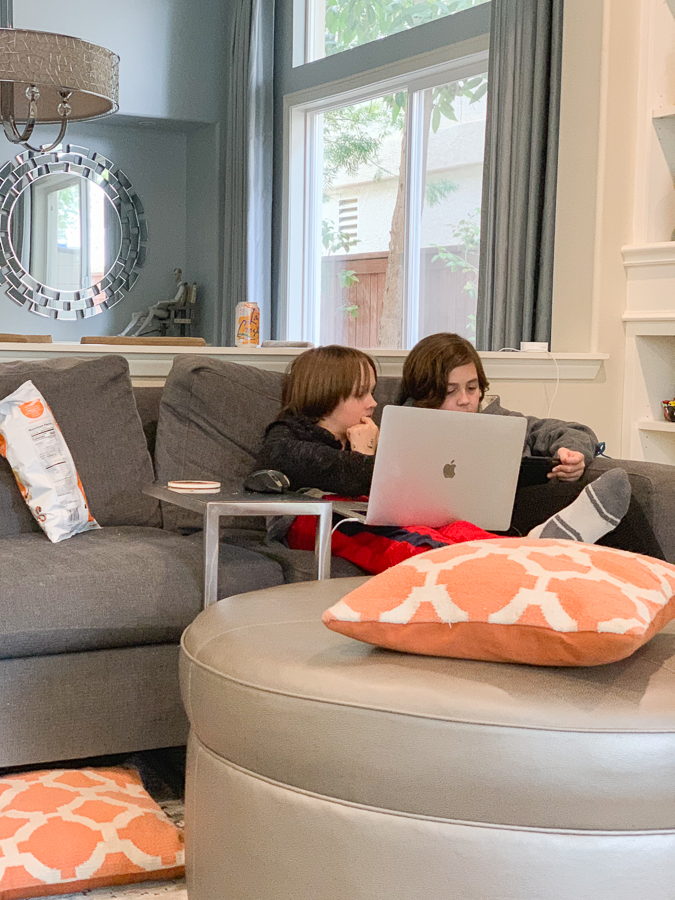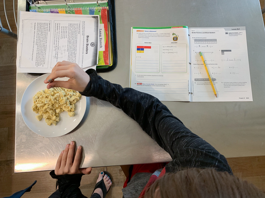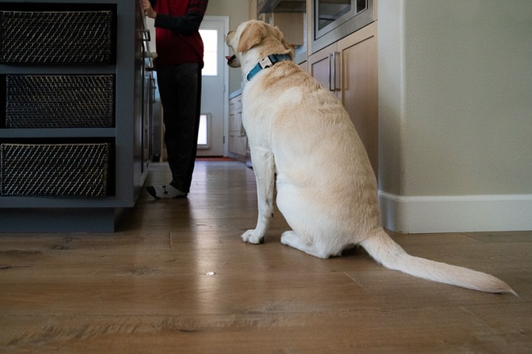 Quinn made himself an after school Magic Banana (sliced banana with chocolate sauce and whipped cream). The rule in this house is that Sonic always gets a little piece of the banana.