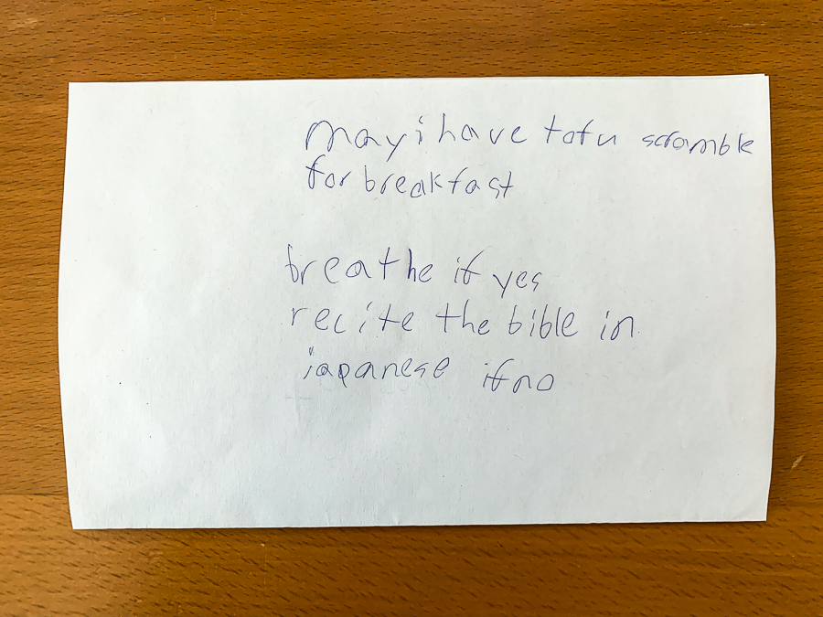 Quinn loves his tofu scramble and left this clever note for his dad one night.