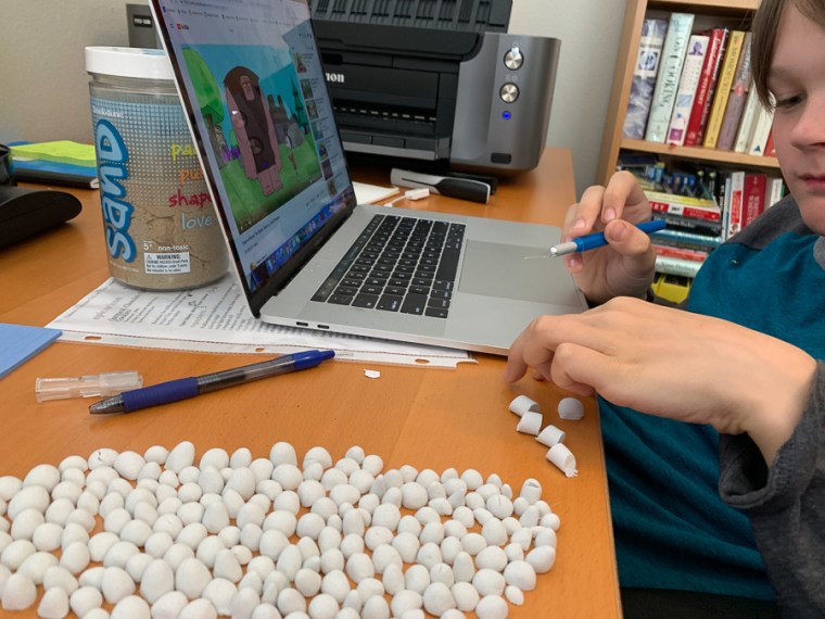 Quinn created a field of pebbles with some of his MadMatter. It took him a very long time but he said it was very satisfying.