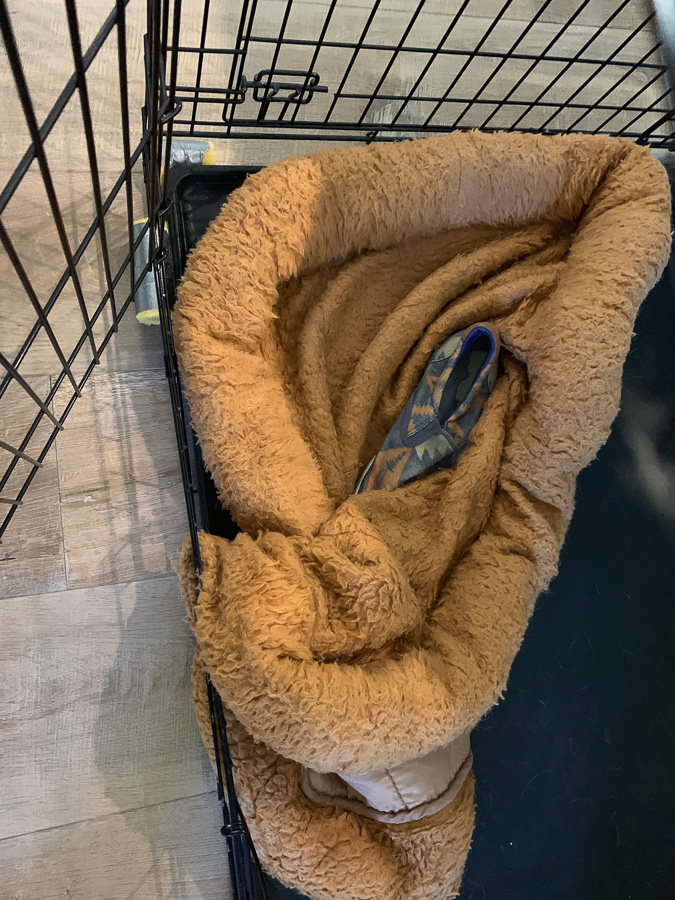 Don couldn\’t find one of his shoes. Sonic might have taken it to cuddle with.