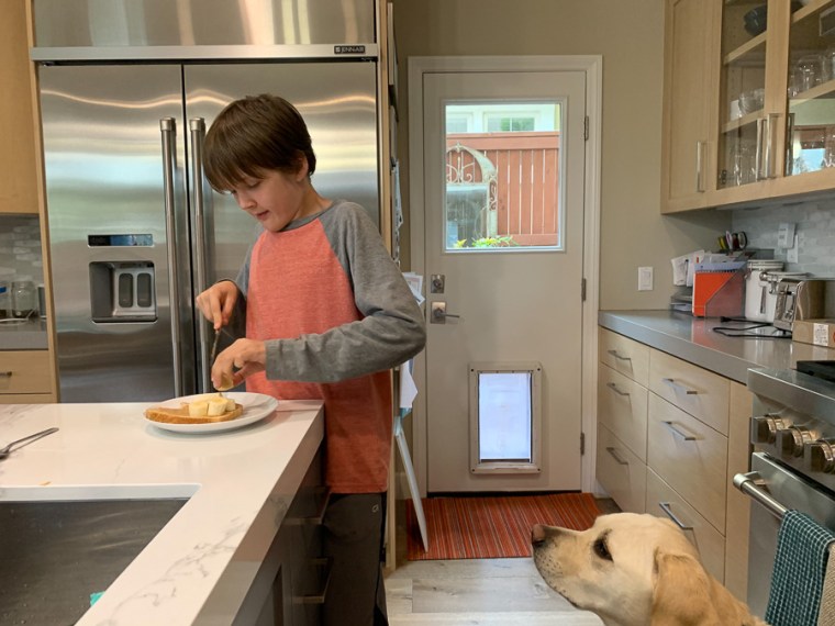 Quinn\’s making a peanut butter and banana sandwich which happens to be one of Sonic\’s favorites.